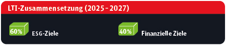 Der variable Vergütungsanteil für die Mitglieder des Aufsichtsrats aus der Erfüllung nachhaltigkeitsbezogener Ziele beträgt 20 %, unter der Prämisse, dass sowohl das nachhaltigkeitsbezogene Ziel als auch das finanzielle Ziel die gleiche Erfüllungsstufe erreicht haben.