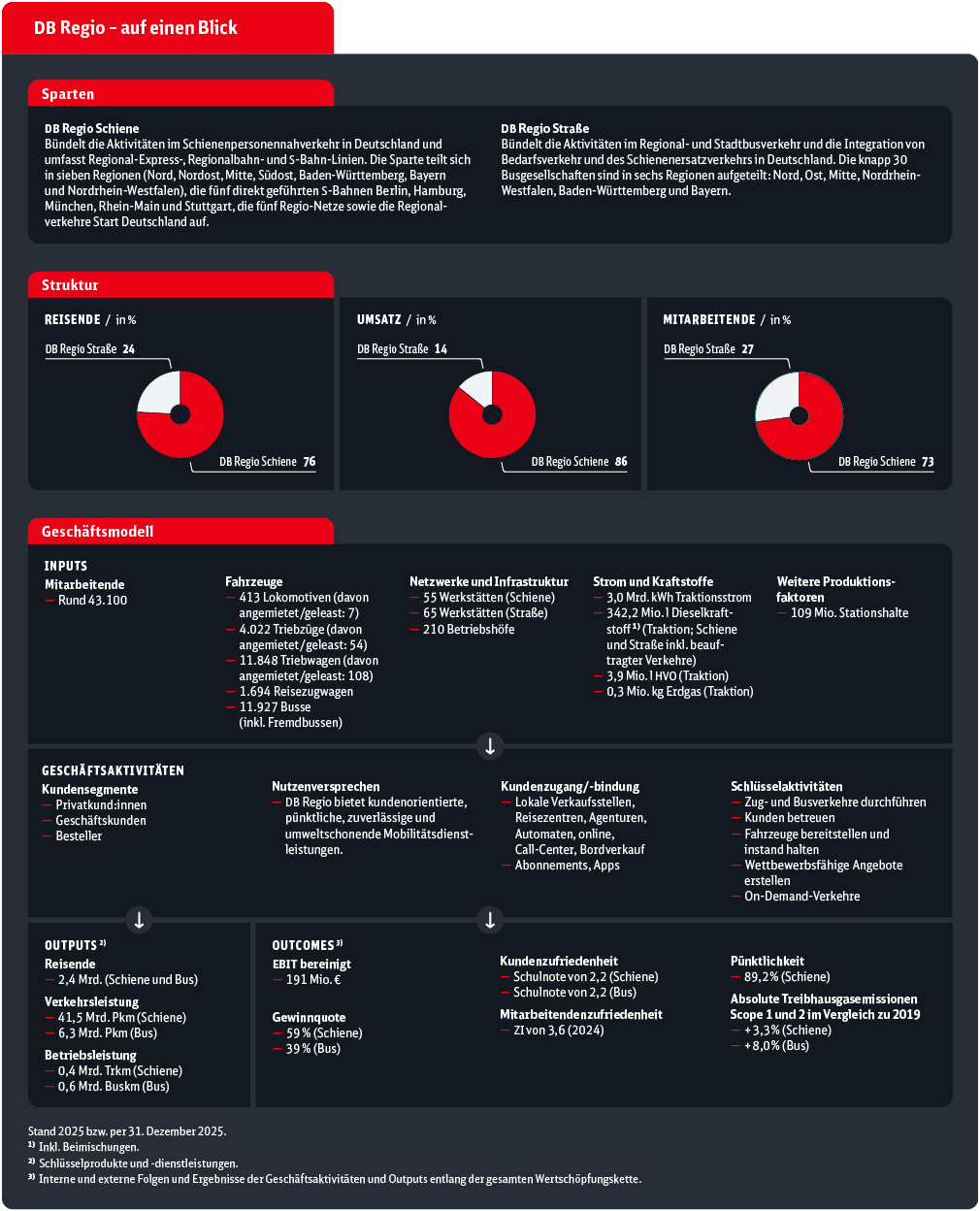 Langfristige Verkehrsverträge und die Vorhaltung umfangreicher Produktionssysteme führen zu einer kostenintensiven Struktur mit hohem Fixkostenanteil, insbesondere bei Personal-, Fahrzeug-, Instandhaltungs- und Infrastrukturkosten. Nur ein geringer Teil der Aufwendungen variiert mit der Zugauslastung.